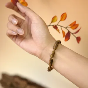 Vòng tay được chế tác hoàn toàn thủ công từ trầm hương Kỳ Hải Nam cao cấp. Mỗi hạt là một phiến trầm tự nhiên, được nghệ nhân tỉ mỉ giữ nguyên vân gỗ và hương thơm trầm thuần khiết, mang lại cảm giác mộc mạc nhưng tinh tế. Hương trầm nhẹ nhàng giúp thư giãn tinh thần, cân bằng năng lượng và thu hút may mắn.